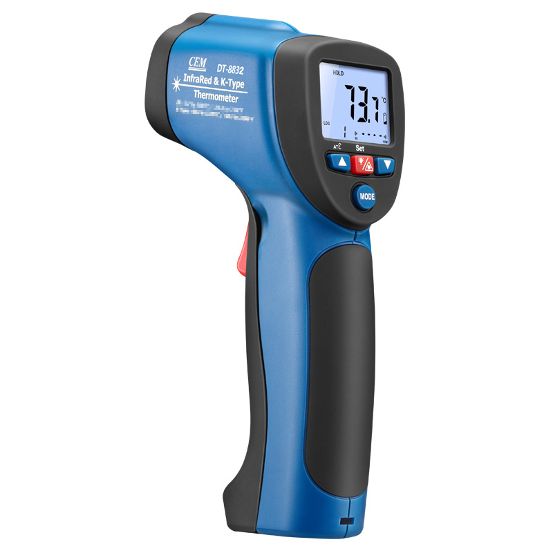 華盛昌DT-8832二合一紅外線測溫儀屬于紅外測溫儀,鋌和華盛昌CEM品牌專區(qū)提供詳細(xì)的華盛昌DT-8832二合一紅外線測溫儀介紹,包括華盛昌DT-8832二合一紅外線測溫儀價格、基本參數(shù)、產(chǎn)品特點、華盛昌DT-8832二合一紅外線測溫儀圖片、功能及適用范圍等信息,還有華盛昌DT-8832二合一紅外線測溫儀問答及用戶評價為您選購提供全方位的參考。想了解更多更全的華盛昌CEM紅外測溫儀報價、型號、種類以及使用方法相關(guān)內(nèi)容,可以到華盛昌CEM品牌專區(qū)。 華盛昌DT-8832二合一紅外線測溫儀是紅外測溫和K型溫度測溫結(jié)合的二合一紅外線測溫儀 雙注塑機殼、1米防摔,高達(dá)30:1的距離比 帶K型熱點偶測溫,可以根據(jù)您的需要適應(yīng)不同場合的測溫要求。 溫度段從380℃至1050℃滿足測溫場景 ℃/℉溫度單位轉(zhuǎn)換 可達(dá)±1.5%測量精度 自動數(shù)據(jù)保持 20個數(shù)據(jù)儲存 最大值/最小值顯示 K型熱電偶測溫(量程設(shè)計-50℃至1370℃) 超亮背光LCD顯示,在暗處也可以輕易測量和讀數(shù) 自動獲取目標(biāo)的可調(diào)發(fā)射率,可測量不同材質(zhì)的物體表面溫度 距離比D:S=16:1,30:1供選擇,高距離比可遠(yuǎn)距離測量更小尺寸目標(biāo)
