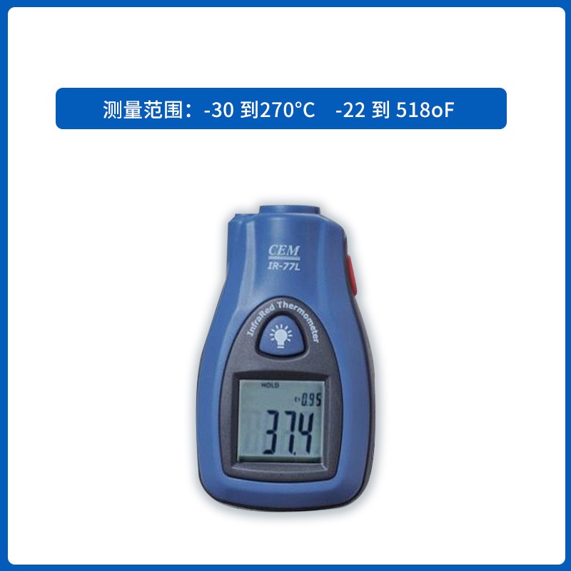 【技術(shù)指標】 顯示器:3 ? 位數(shù)字式液晶顯屏,帶背光顯示 測量范圍:-30 到270°C / -22 到 518oF 關(guān)機:大約7-8秒鐘后自動關(guān)機 激光功率:小于1mW (紅色) 操作溫度:32至 122°F (0至 50°C) 操作濕度:80% RH 測量量程范圍:-30 至 270°C/ -22至 518oF