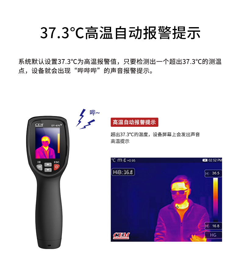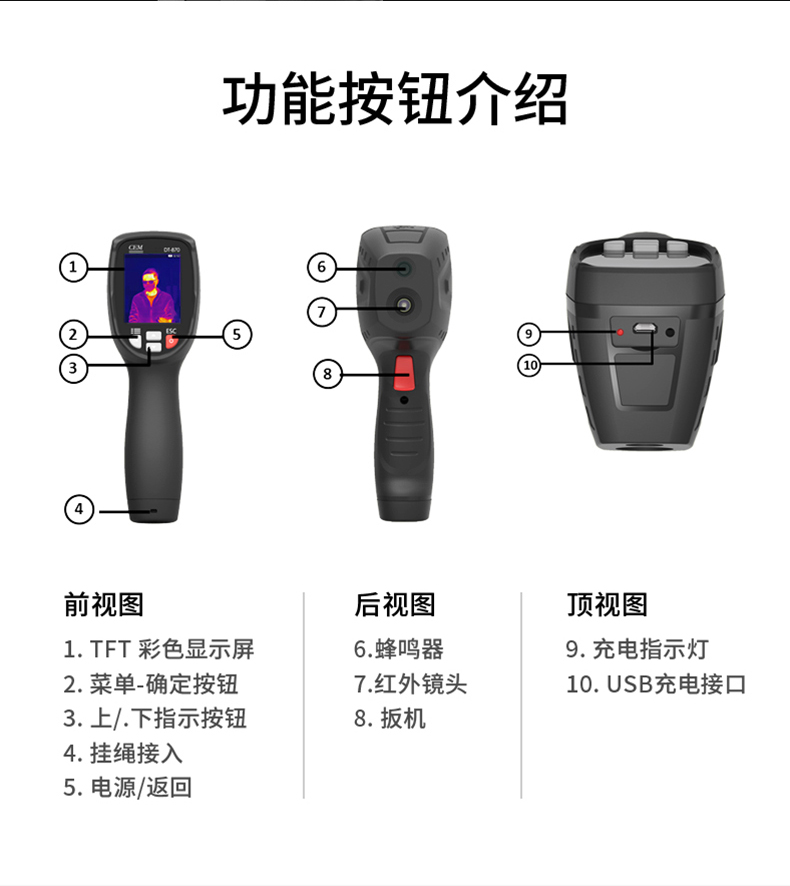 標(biāo)配鏡頭7.5mm,分辨率80×80,IFOV:4.53mard,視場角21×21°,熱靈敏度NETD<0.1℃,圖像幀頻50Hz,溫度范圍(-20-380),可見光分辨率320×240像素