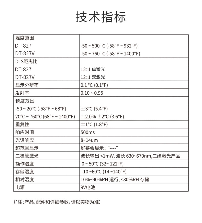 單激光、溫度-50-750、距離比12:1、反顯屏