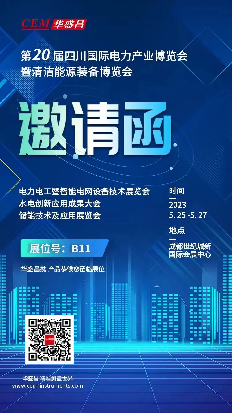 2023年5月25—27日,一年一度的電力能源行業(yè)盛會——第二十屆四川國際電力產(chǎn)業(yè)博覽會暨清潔能源裝備博覽會將在成都世紀城新國際會展中心舉行。華盛昌將攜旗下多款電子電力檢測儀器亮相B11展位。