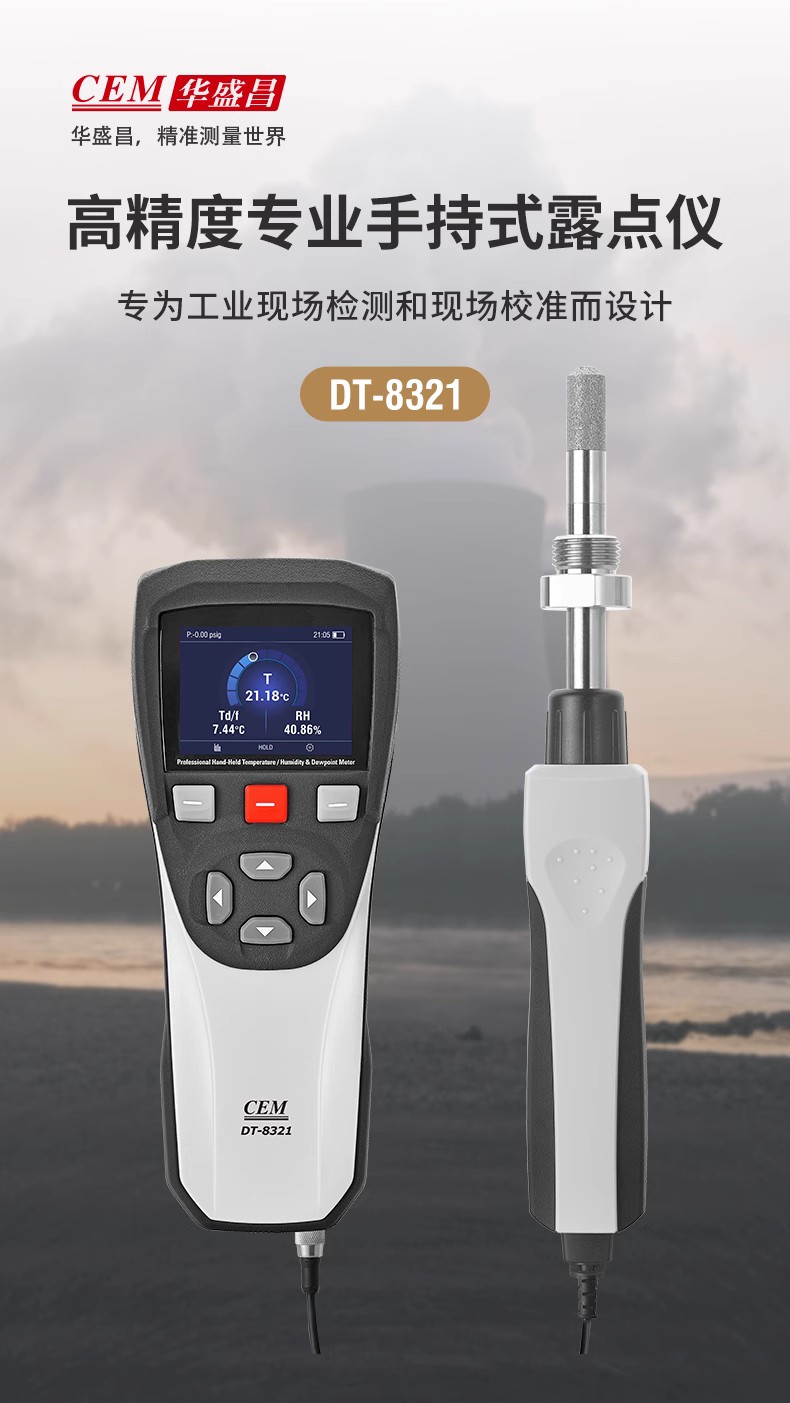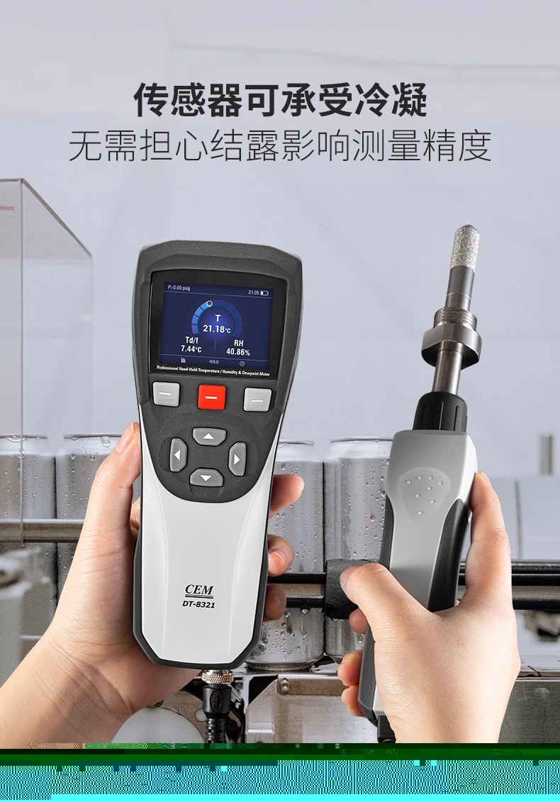 CEM DT-8321是CEM華盛昌新設(shè)計、研發(fā)和制造的一款高精度專業(yè)手持式露點儀,精度高范圍廣,能在較寬的測量范圍內(nèi)準確測量露點溫度,探頭可直接插入加壓過程中,并快速響應測試過程環(huán)境條件,為工業(yè)露點測量應用提供準確快速的測量。產(chǎn)品廣泛應用于實驗室、電力電氣、SF6氣體測量、精密制造、化工制藥等領(lǐng)域的大溫度、大壓力范圍內(nèi)的直接過程露點測量。